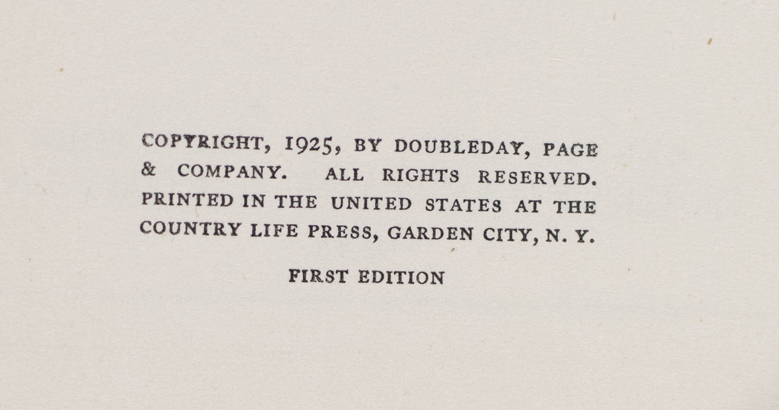Doubleday, Page & Company: Garden City, NY, 1925.