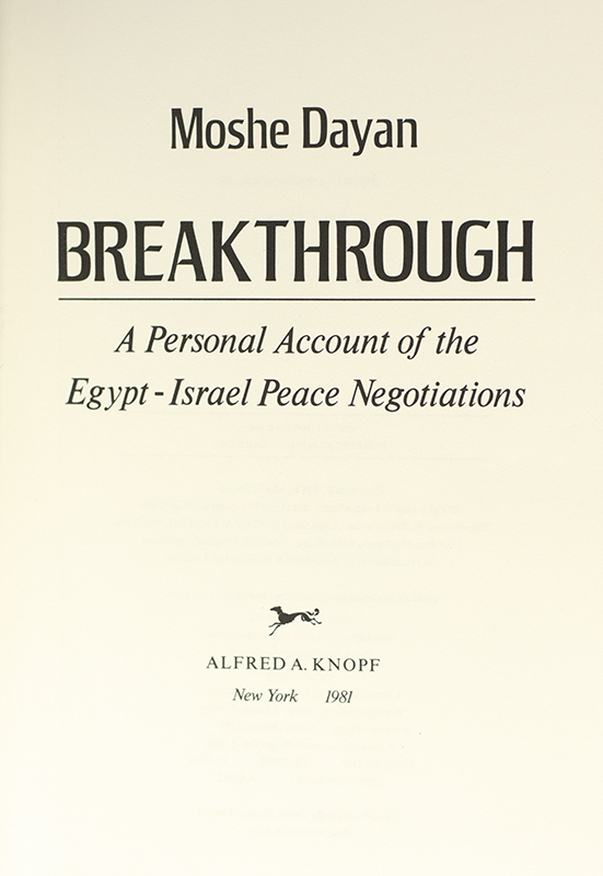 "If you want to make peace, you don't talk to your friends. You talk to your enemies": First Edition of Moshe Dayan's Breakthrough: A Personal Account of the Egypt-Israel Peace Negotiations; Signed by Him