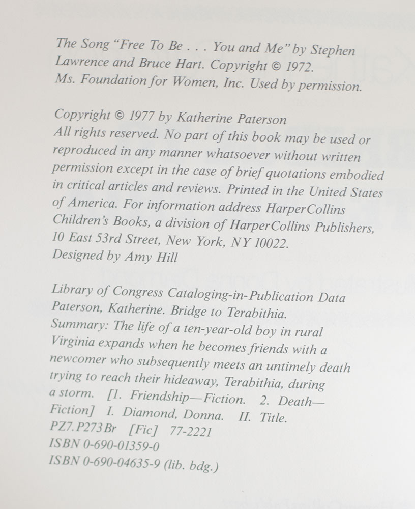 Bridge to Terabithia; Inscribed by Katherine Paterson