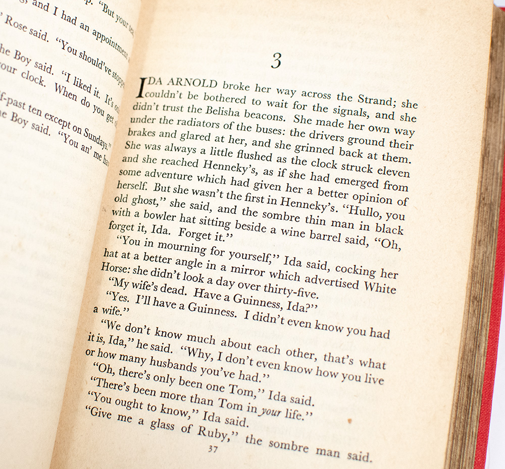 "Here the probing is carried further in a brilliant and uncompromising indictment of some of the worst aspects of modern civilization, showing us the hard-boiled criminal mind not as a return to savagery but as a horrible perversion of cerebration" (The New York Times). It is the basis for the 1947 film directed by John Boulting and starring Richard Attenborough as gang leader Pinkie Brown and the 2010 film, which stars Sam Riley, Andrea Riseborough, Andy Serkis, John Hurt, Sean Harris and Dame Helen Mirren. The American edition preceded this British author's British edition by one month.
