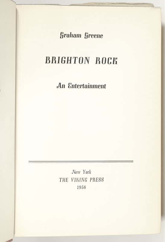 “You cannot conceive, nor can I, of the appalling strangeness of the mercy of God": First Edition of Graham Greene's Brighton Rock
