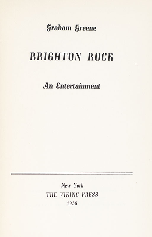 First Edition of Graham Greene's Brighton Rock; Inscribed by Him