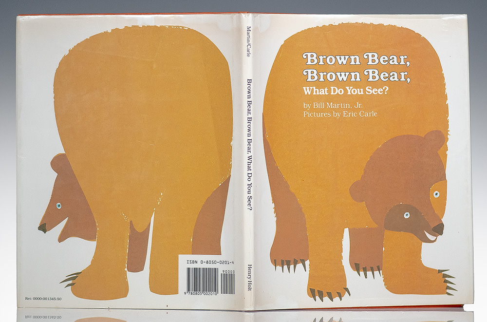 First General Book edition, early printing of enormously creative children's book. Small quarto, original illustrated boards. Presentation copy, inscribed by the author on the title page, "Grrr, for Ryan, Eric Carle," with an large original drawing of a bear standing on two legs. Near fine in a near fine dust jacket. Rare and desirable with an original drawing.