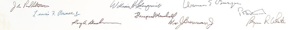BURGER, Warren; John Paul Stevens; Lewis F. Powell Jr.; Harry A. Blackmun; William H. Rehnquist; Thurgood Marshall; Warren E. Burger; Wm J. Brennan Jr.; Potter Stewart; Byron R. White.