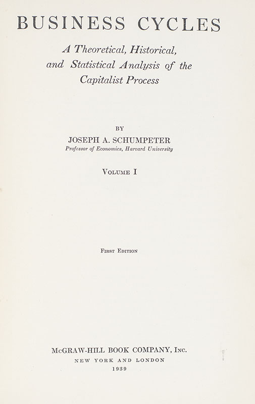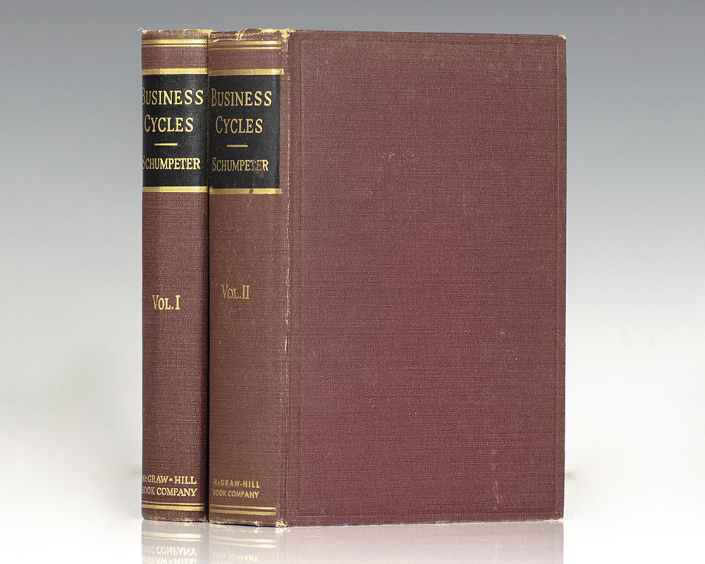 Rare First Edition of Economists Joseph Schumpeters Classic Work Business Cycles; Inscribed by Him to Fellow Economist Seymour Harris