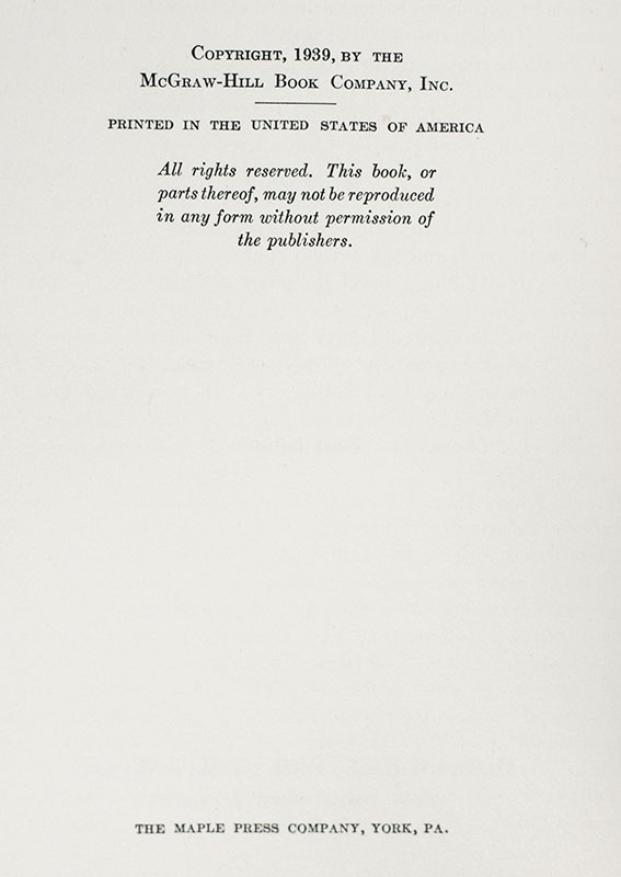 New York: McGraw-Hill Book Company, Inc, 1939.