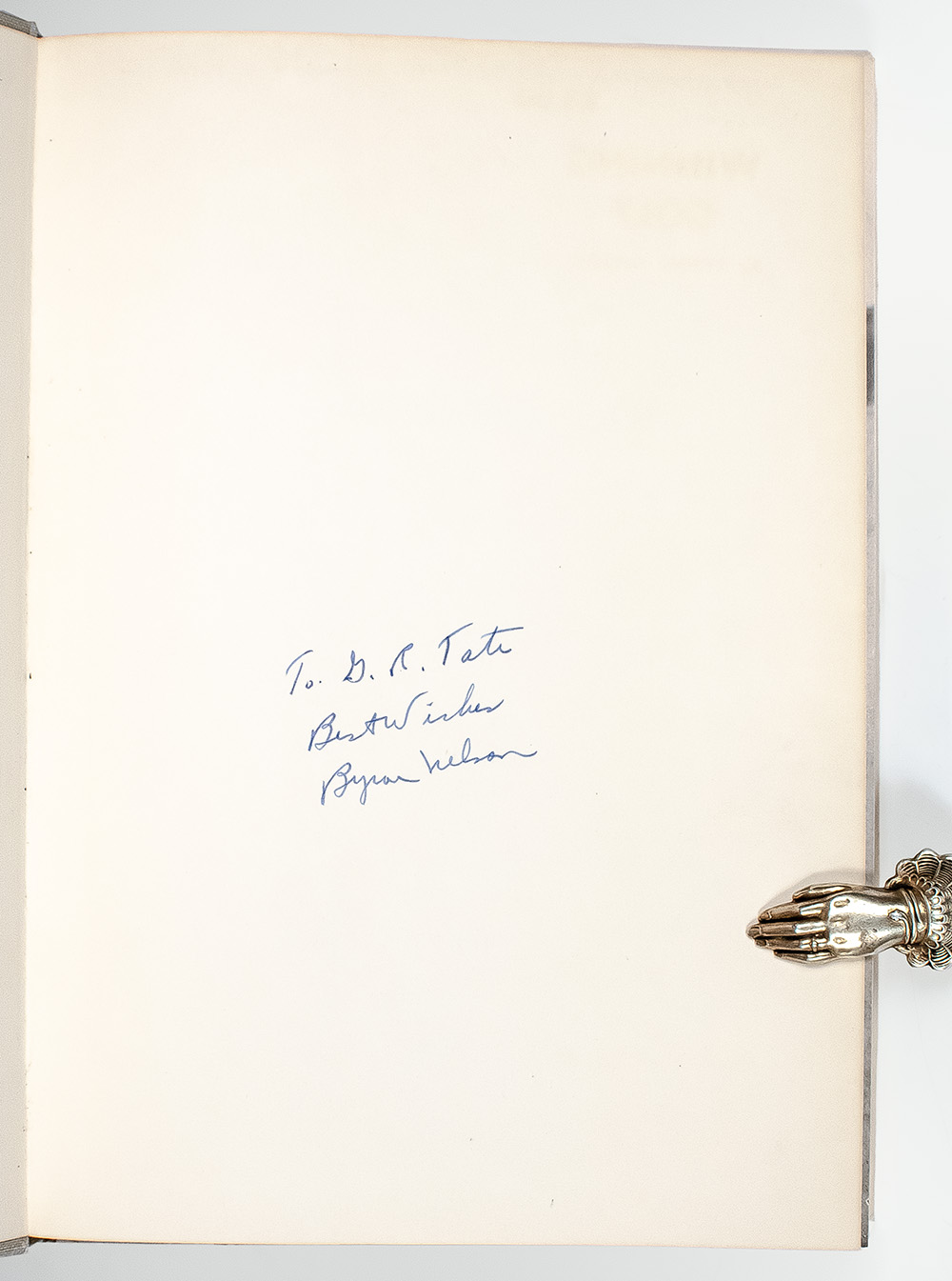 First edition of Nelson's first book. Octavo, original cloth, illustrated. Foreword by Grantland Rice. Presentation copy, inscribed by the author on the front free endpaper, "To G.R. Tate Best Wishes Byron Nelson." Fine in a near fine dust jacket. A superior example.