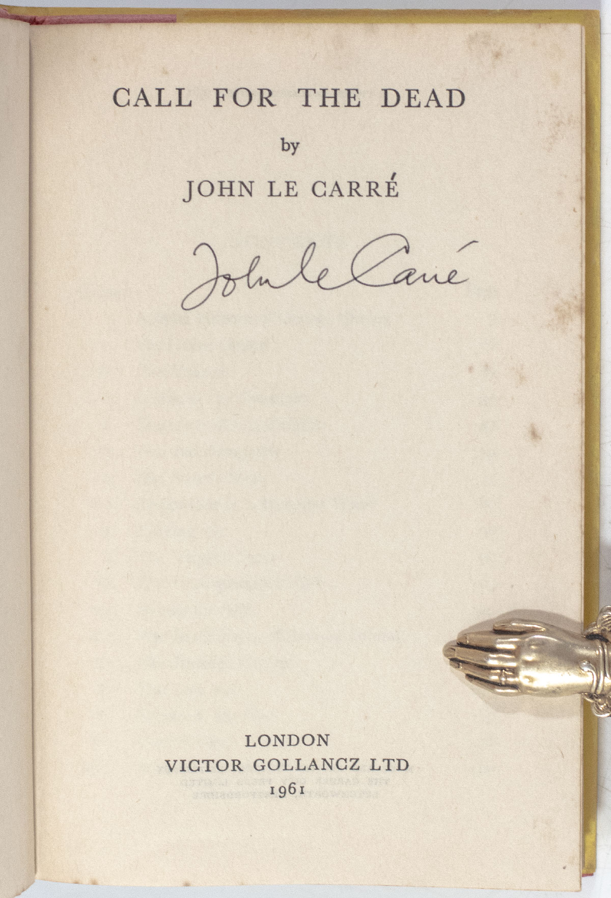 First edition of the author's first book, which introduced the world to the recurring protagonist, George Smiley. Octavo, original red cloth. Signed by John le Carre on the title page. Near fine in a near fine price-clipped dust jacket with light expert restoration. With a signed letter from le Carre's secretary stating that he will sign this first edition. A sharp example, uncommon signed.