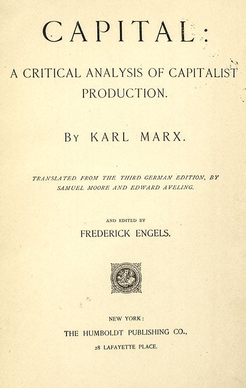 “JUST AS MAN IS GOVERNED, IN RELIGION, BY THE PRODUCTS OF HIS OWN BRAIN, SO, IN CAPITALIST PRODUCTION, HE IS GOVERNED BY THE PRODUCTS OF HIS OWN HAND”: RARE FIRST AMERICAN EDITION IN ENGLISH OF KARL MARX'S LANDMARK WORK CAPITAL