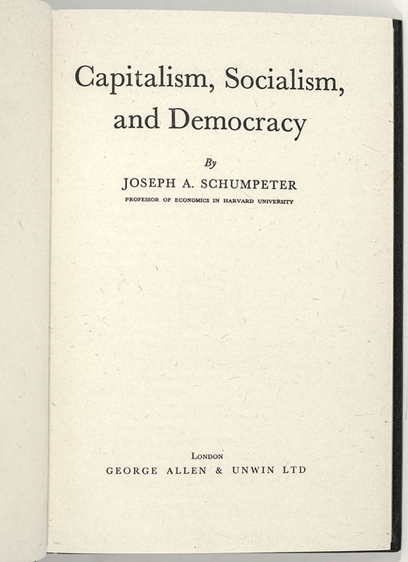 “Capitalism Survive?—I have tried to show that a socialist form of society will inevitably emerge from an equally inevitable decomposition of capitalist society": Rare First Edition of Capitalism Socialism and Democracy; Finely Bound