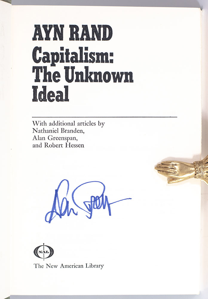 “FREEDOM IS THE FUNDAMENTAL REQUIREMENT OF MAN’S MIND”: FIRST EDITION OF AYN RAND'S CAPITALISM: THE UNKNOWN IDEAL; SIGNED BY FEDERAL RESERVE CHAIRMAN ALAN GREENSPAN