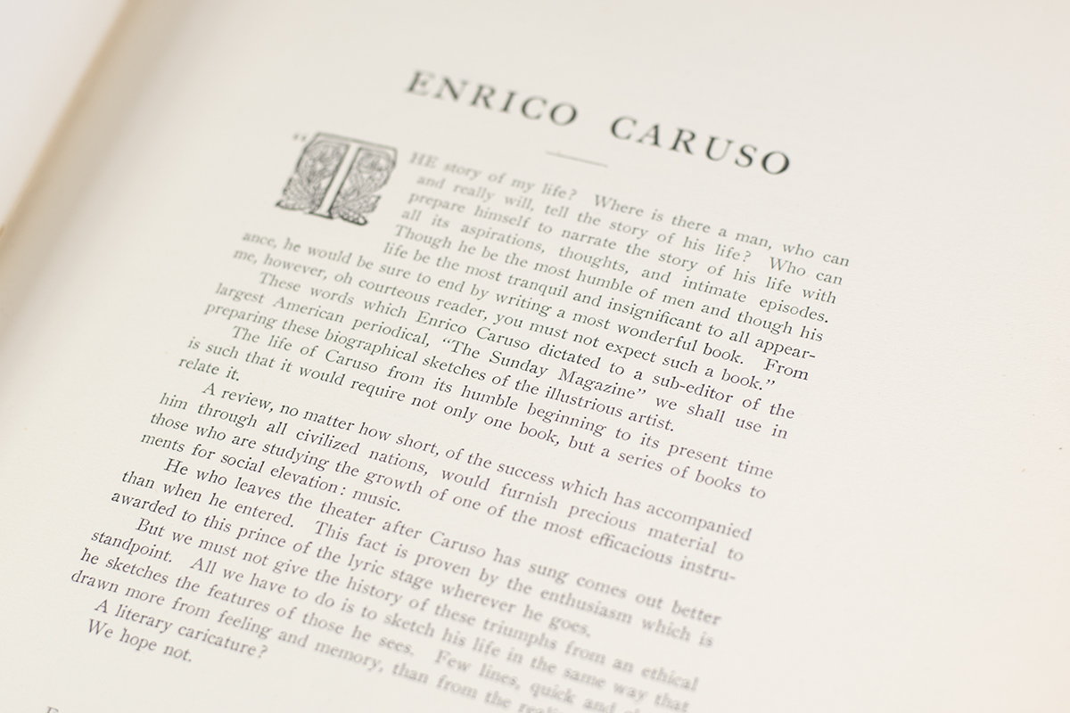 First Edition of Enrico Caruso's Caricatures; lengthily inscribed by him