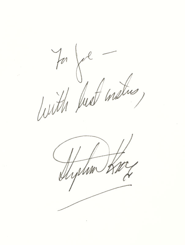 First edition stated on copyright page and "P6" in the gutter of page 199 of King's first book. Octavo, original cloth. Presentation copy, inscribed by the author, "For Joe—With best wishes, Stephen King." Near fine in a near fine dust jacket with a touch of shelfwear. Jacket design by Alex Gotfryd. A nice example.