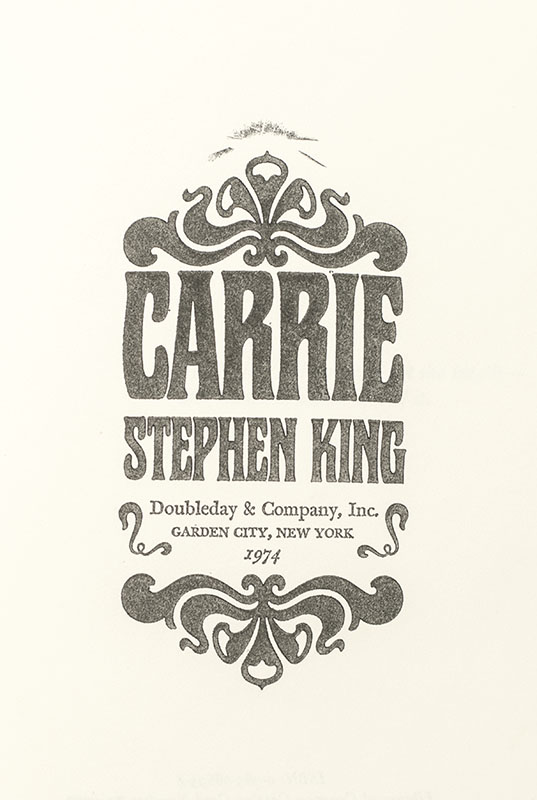 “True sorrow is as rare as true love": First Edition of Stephen King’s First Book Carrie; Inscribed by Him