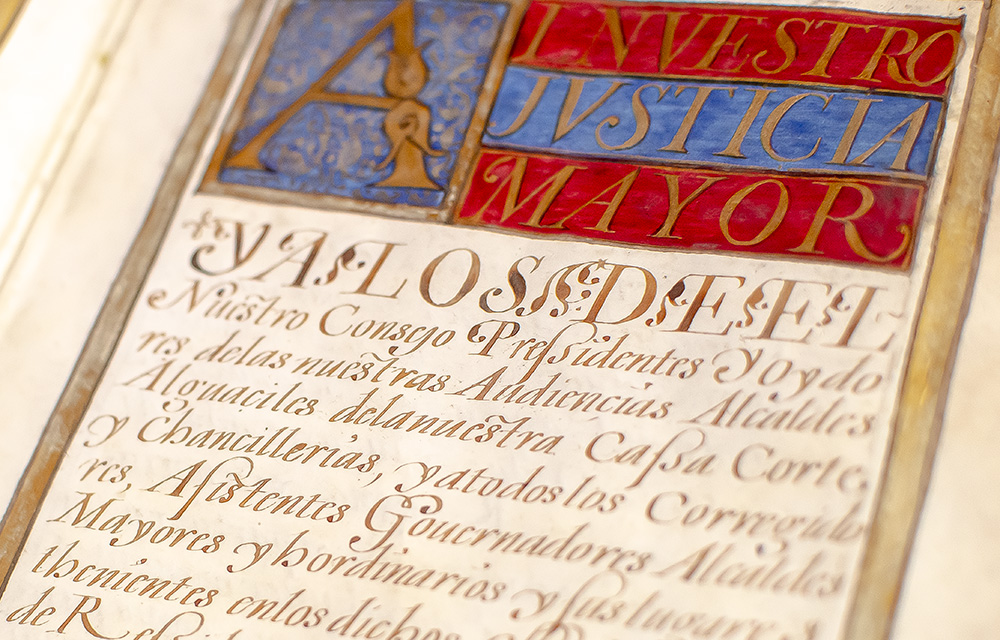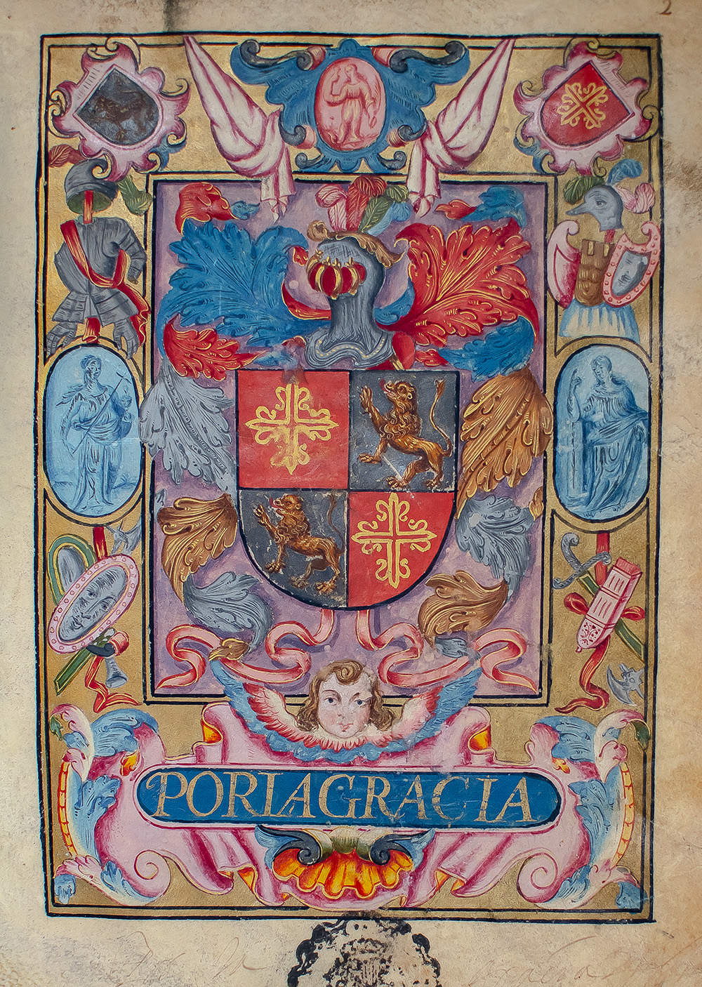 Rare 17th century elaborately illuminated nobility patent of King Carlos II of Spain for Diego Merino de Bargas of Tornavacas and His Sons Rodrigo, Francisco, and Luis Merino de Bargas