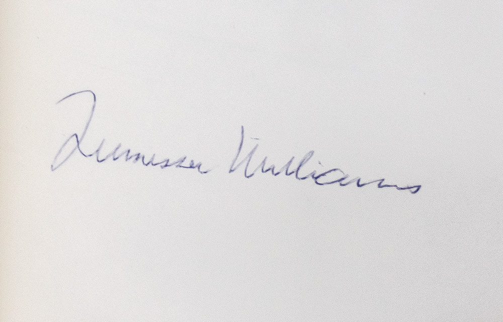 First edition, first issue of one of Williams's best-known works and his personal favorite. Octavo, bound in full morocco by the Harcourt Bindery, gilt titles and tooling to the spine in six compartments within raised gilt bands, gilt ruling to the front and rear panels, gilt inner dentelles stamp-signed by the Harcourt Bindery, marbled endpapers, all edges gilt. Boldly signed by Tennessee Williams on a page bound in. In fine condition.