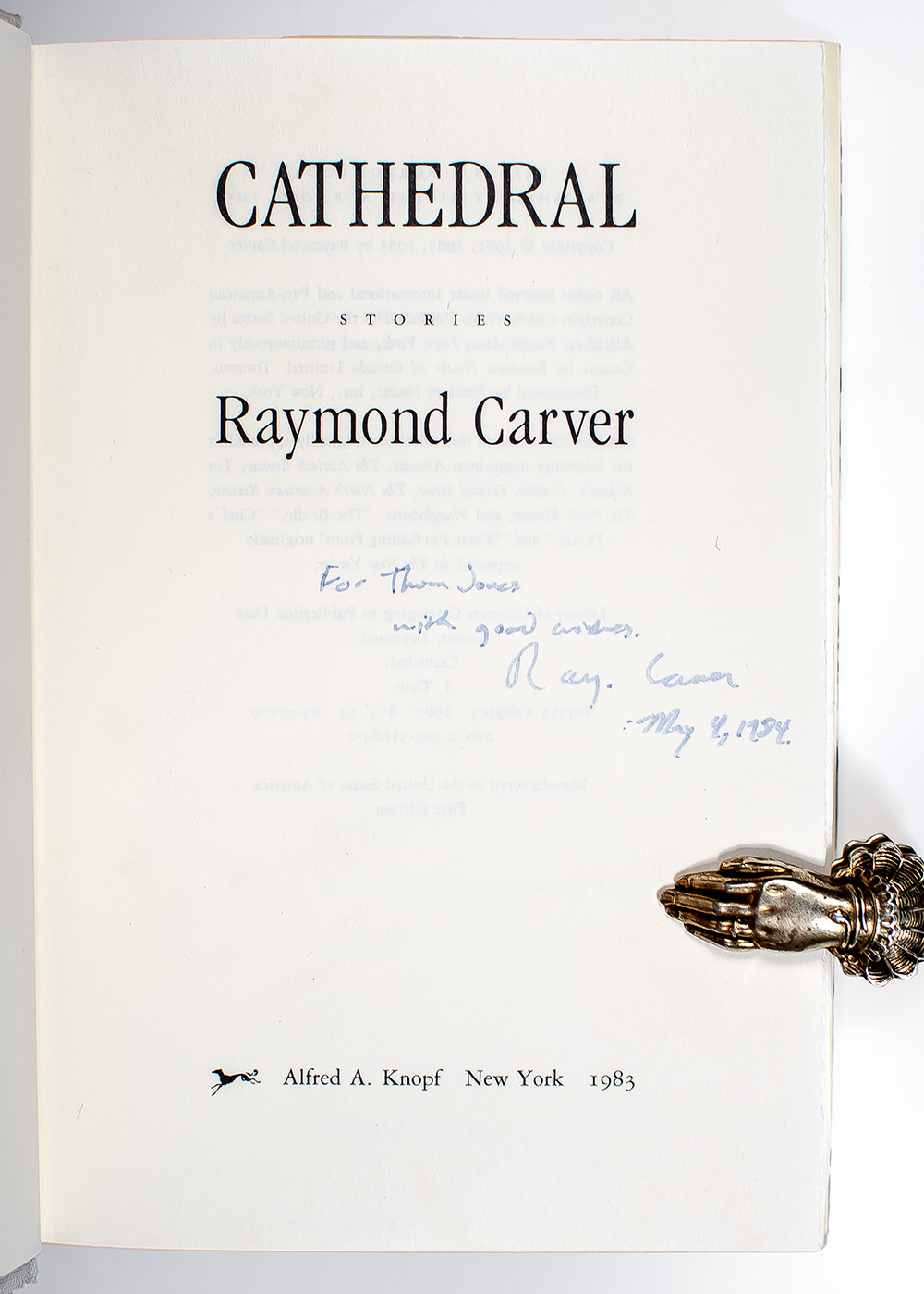 FIRST EDITION OF RAYMOND CARVER’S CATHEDRAL; Inscribed by Raymond Carver to fellow writer Thom Jones