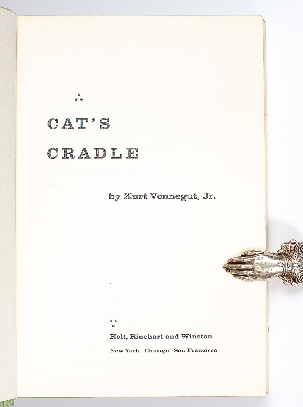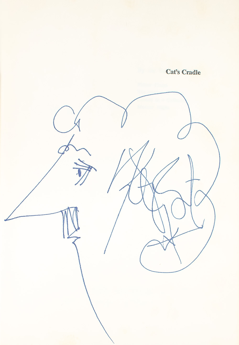 “ROUND AND ROUND WE SPIN, WITH FEET OF LEAD AND WINGS OF TIN”: FIRST EDITION OF CAT’S CRADLE; SIGNED BY KURT VONNEGUT WITH A SELF-PORTRAIT SKETCH
