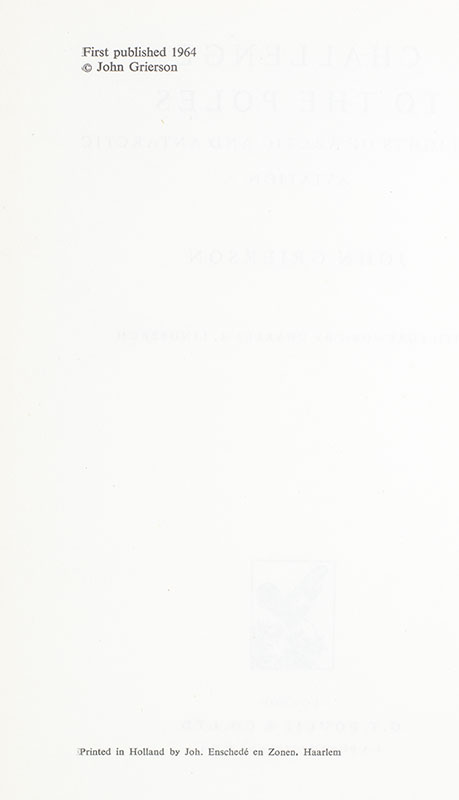 First Edition of John Grierson's Challenge to the Poles: Highlights of Arctic and Antarctic Aviation; From the library of Adventurer and Explorer Steve Fossett