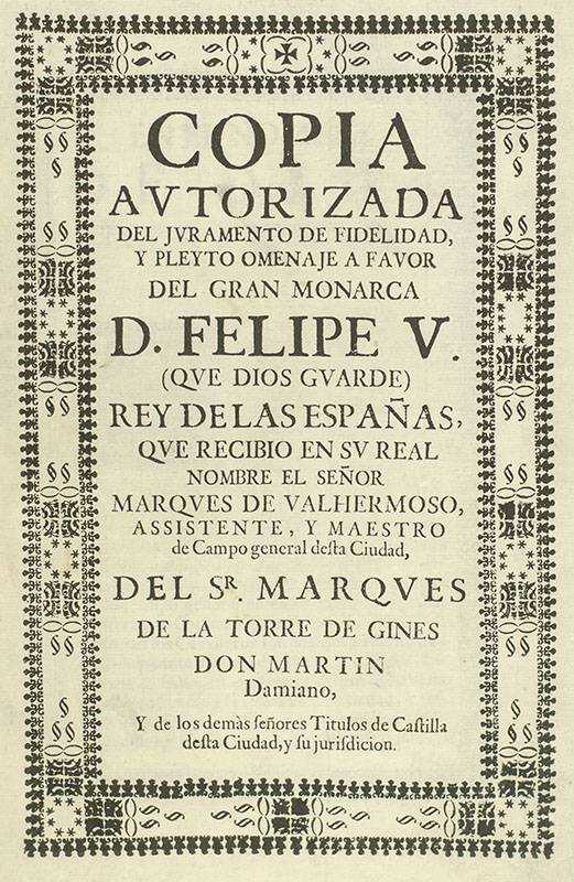 Rare elaborately illuminated nobility diploma signed by King Charles II of Spain, appointing Don Martin Damian Mendizabal the title of Marquis of Torre Gines. Quarto, bound in full red contemporary velvet covered boards with two metal clasps, containing five illuminated leaves, two fully illuminated in color with the Royal coat of arms and portrait of King Charles II, text in Spanish. Signed by King Charles II, "Yo el Rey" and additionally signed by several Royal secretaries. Bound with a printed manuscript of the Oath of Fidelity to the King of Spain with Royal stamps dated 1701 and with two autograph letters laid in, the first dated September 17, 1701 and signed by Philip V, and the second addressed to the Marquis. Exceptionally rare.