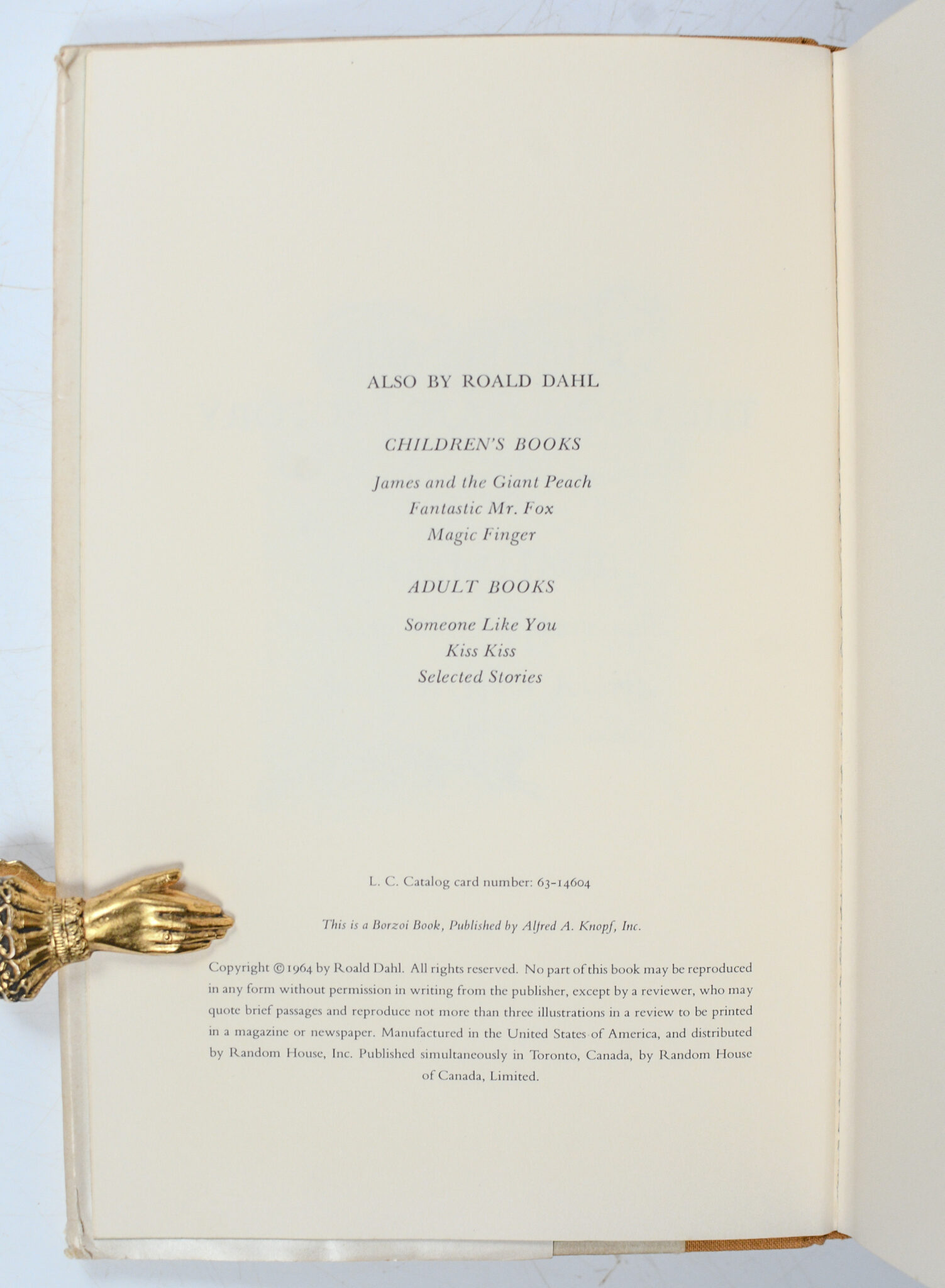 "A little nonsense now and then is relished by the wisest men": First Edition of Charlie and the Chocolate Factory; Warmly Inscribed by Roald Dahl