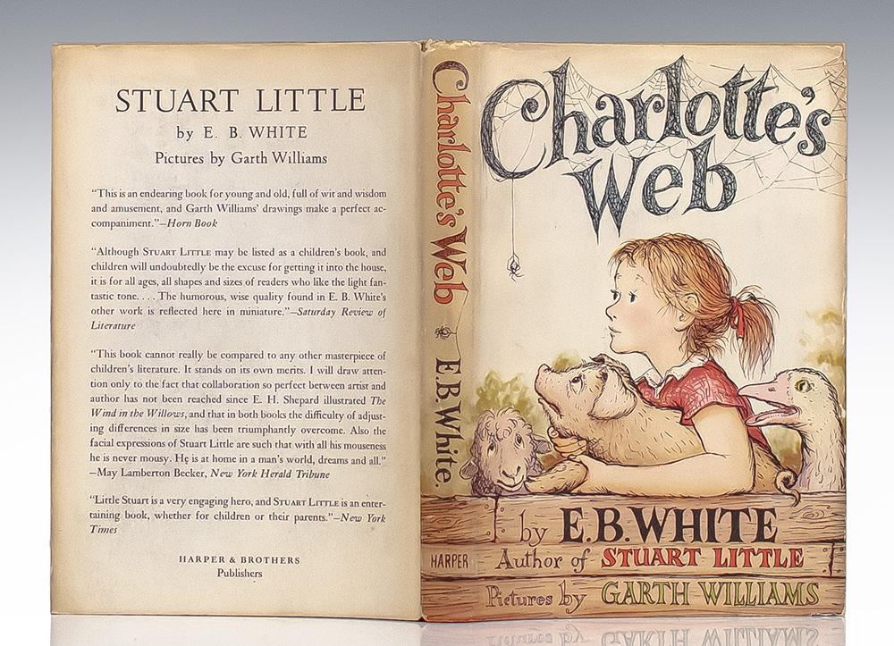 First edition, first printing of E.B. White's classic tale of friendship with the code "I-B" on the copyright page. Octavo, original cloth, blue and white spider-web patterned endpapers. Near fine in a very good dust jacket. Illustrated by Garth Williams. A very nice example.