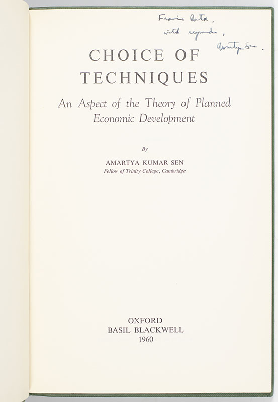 Rare First Edition of Amartya Sen's Choice of Techniques; Inscribed by Him to Fellow Economist Francis Bator