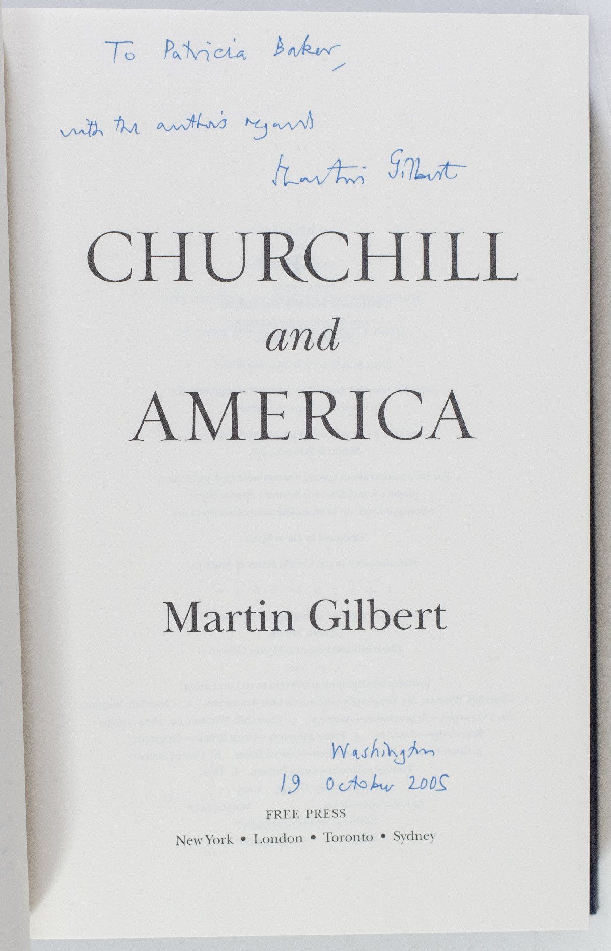 First Edition of Martin Gilbert's Churchill and America; Inscribed by Him in the year of publication