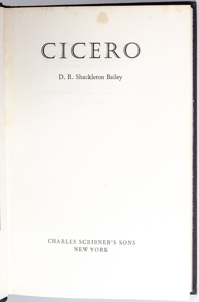 First edition of Shackleton Baileys Cicero; FROM THE LIBRARY OF ENGLISH CLASSICIST BERNARD KNOX WITH HIS OWNERSHIP SIGNATURE