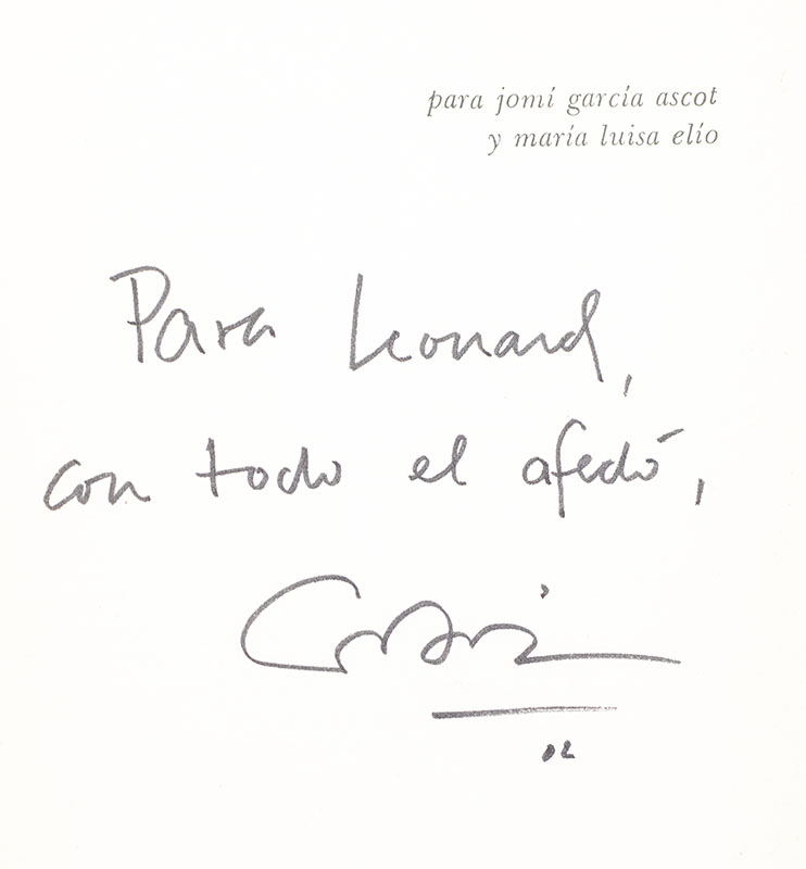First edition of the author's masterpiece which is recognized as one of the most significant works in the Spanish literary canon. Octavo, original illustrated wrappers. Presentation copy, inscribed and dated by the author on the dedication page, "Para Leonard, con todo el afecto, Gabo." In near fine condition with light rubbing. Housed in a custom half morocco clamshell box made by the Harcourt Bindery. An exceptional example, rare and desirable signed.