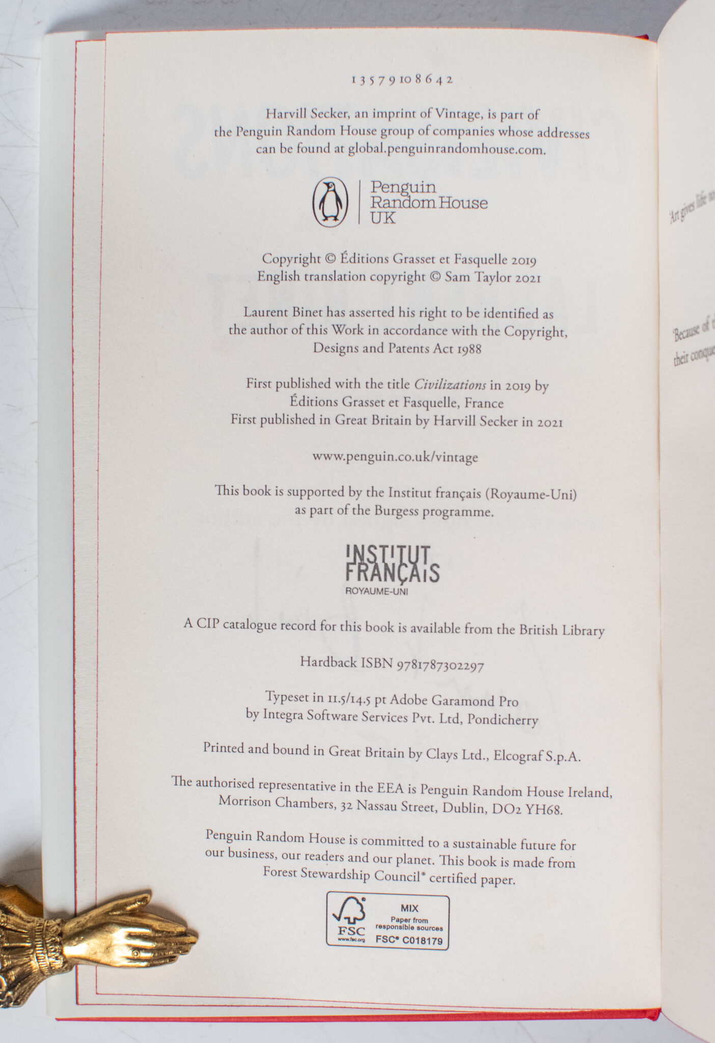 First Limited Edition of Civilisations; Signed by Laurent Binet