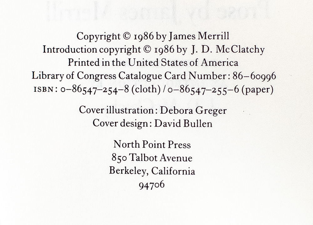 James Merrill First Edition Collection: Scripts for the Pageant, From the First Nine: Poems 1946-1976, The Changing Light at Sandover, Late Settings: Poems, Recitative: Prose, and A Different Person: A Memoir