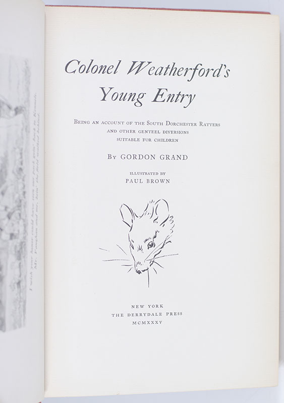 First edition of the fourth books in the great sporting writer's Colonel Weatherford series. Octavo, original cloth. Illustrated by Paul Brown. One of 1350 copies printed for Eugene V. Connett at the Derrydale Press. Bookplate. In near fine condition.