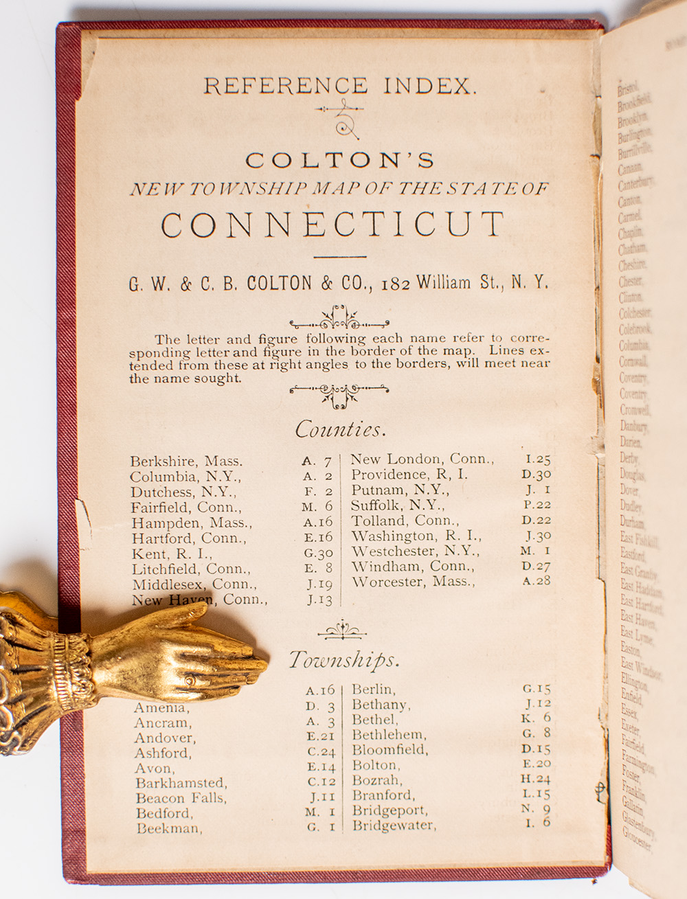 G. Woolworth and C. B. Colton's Road Map of Litchfield and Fairfield Counties of Western Connecticut; From the Library of Philemon Tecumseh Sherman