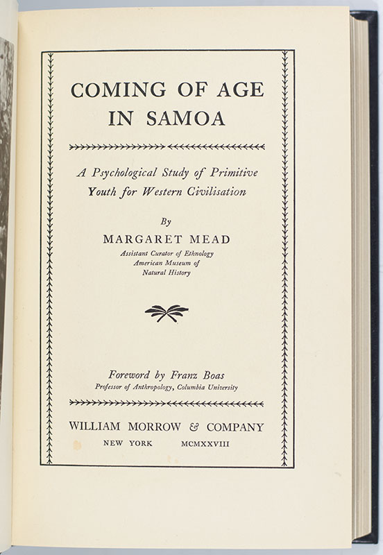 "An accomplishment in the field of anthropology on par with Charles Darwin's On The Origin of Species": First edition of Margaret Mead's Coming of Age In Samoa