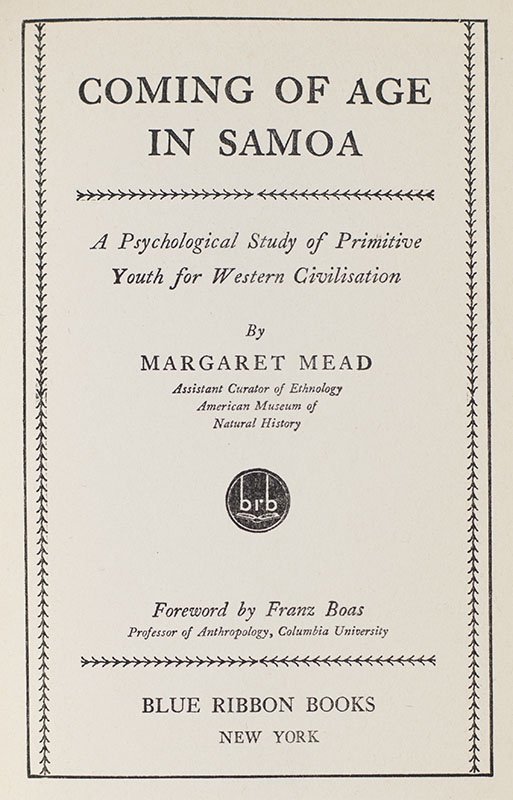 Coming of Age in Samoa: A Psychological Study of Primitive Youth in Western Civilisation.