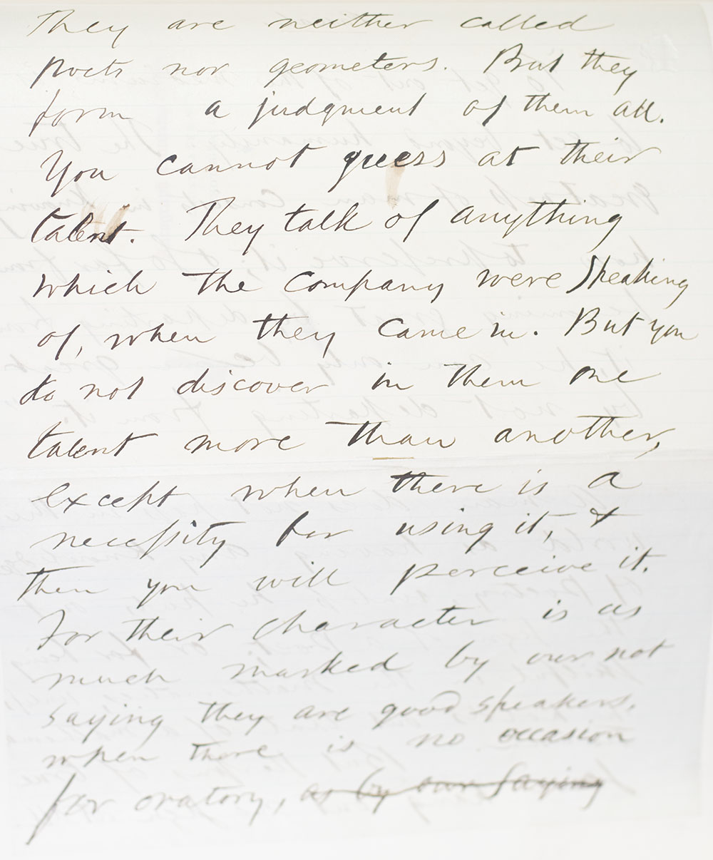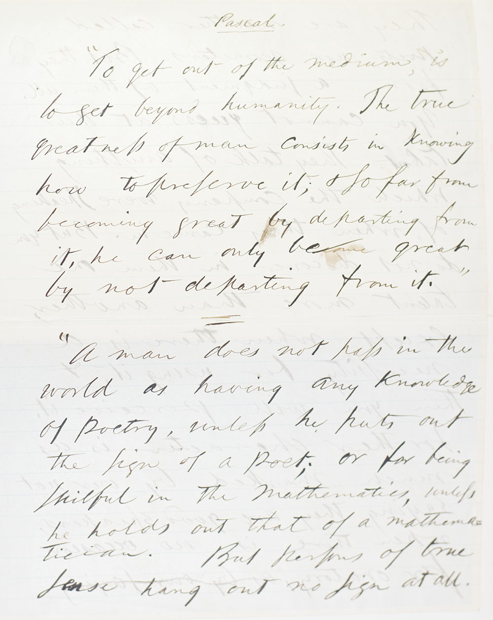 Autograph Centenary edition with a double sided manuscript in Emerson’s hand bound into volume one. Octavo, 12 volumes, bound in three quarters morocco, elaborately gilt-decorated spines, raised bands, top edge gilt, marbled endpapers. Numerous mounted photogravure illustrations. One of 600 copies. Emerson discovered Pascal in college and was a lifelong admirer of Pascal's wisdom. At 23, he wrote, “It is the leading idea of Pascal’s Religious Meditations to contrast what is grand & pitiful in human nature.” In 1859 he remarked, “Now & then, rarely comes a stout man like Luther, Montaigne, Pascal, Herbert, who utters a thought or feeling in a virile manner, and it is unforgettable." And in his journals of April-May 1864: "We said, that ours was the recuperative age. Pascal is one of its recoveries, not only the essay on Love, but the pure text of the Pensees." The quotations in this text seem to be all from the Pensees. In fine condition.