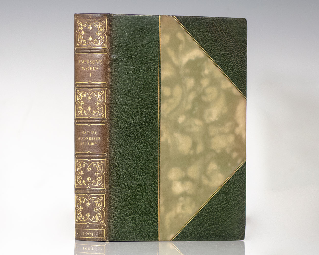 The Riverside edition of the Emerson's Complete Works. Octavo, 16 volumes bound in three quarter morocco with gilt titles and tooling to the spine in six compartments within raise gilt bands, top edge gilt with others untrimmed, marbled endpapers. In near fine condition.