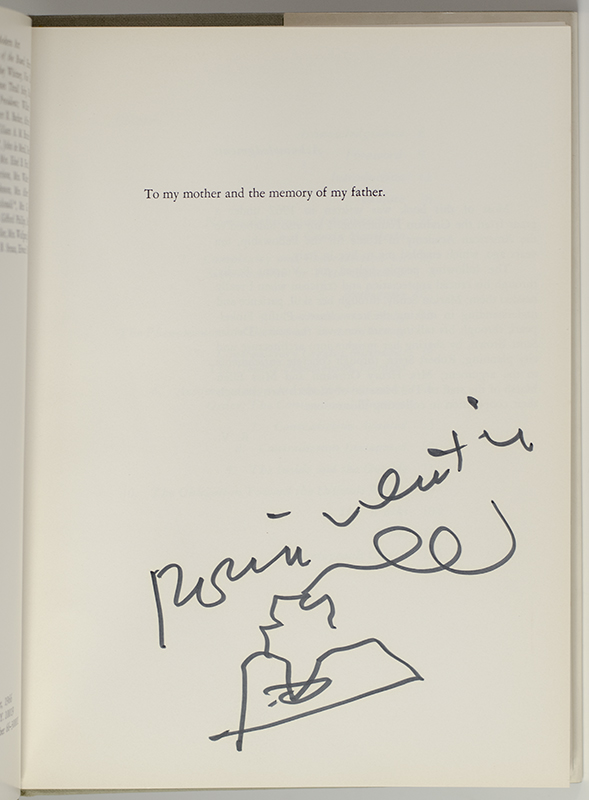 First edition of this essential document of architectural literature. Octavo, original gray cloth, illustrated. Boldly signed by Robert Venturi who has added a drawing of his mother's house on the dedication page. Fine in a near fine dust jacket. Introduction by Vincent Scully.