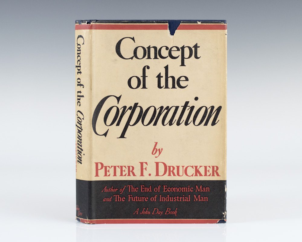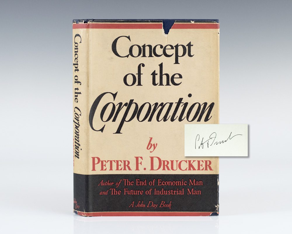 "Results are gained by exploiting opportunities, not by solving problems": First Edition of Peter Druckers Classic Concept of the Corporation; Signed by Him