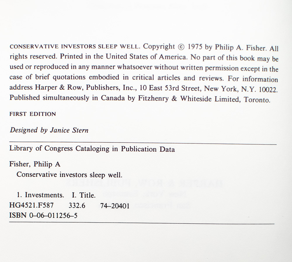 “MONEY CAN CONSISTENTLY BY MADE THROUGH INTELLIGENT, LONG-TERM INVESTING”: First Edition of Philip A. Fisher's Conservative Investors Sleep Well