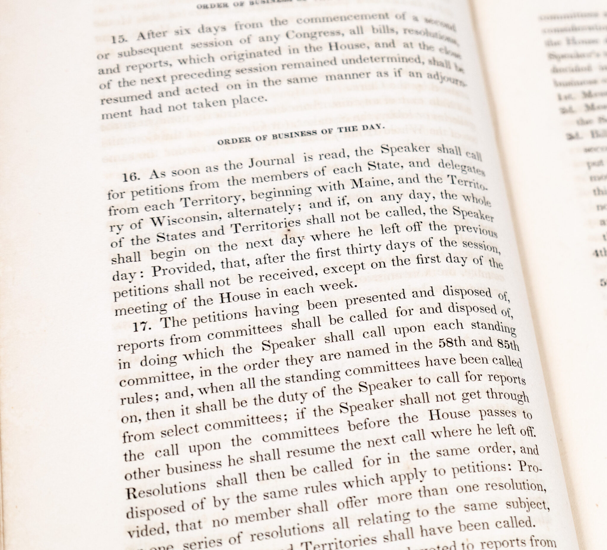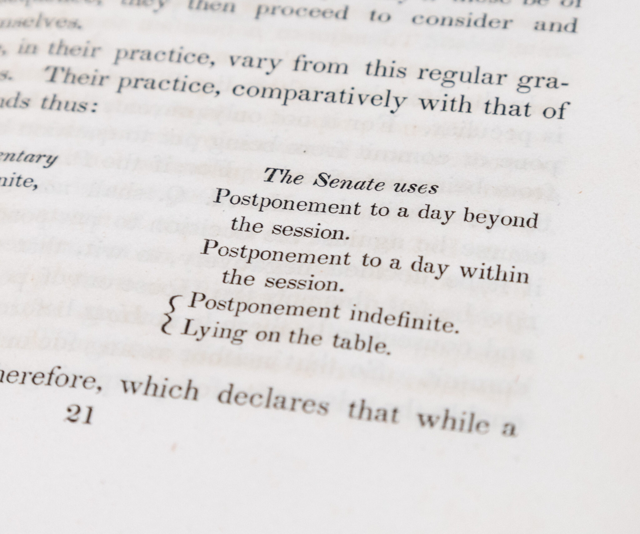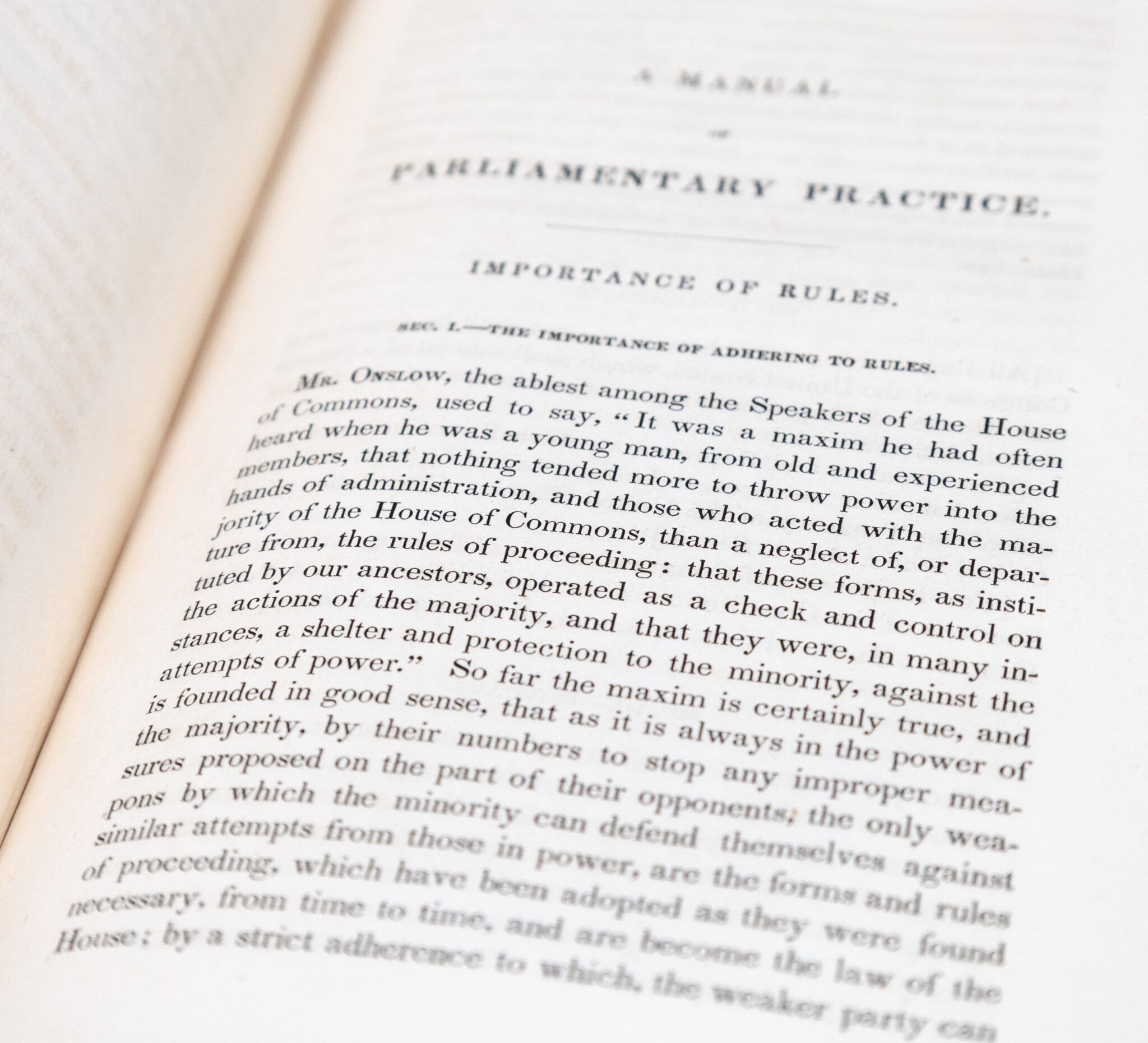 First edition of the official compilation of United States congressional procedures, incorporating Thomas Jefferson’s Manual of Parliamentary Practice