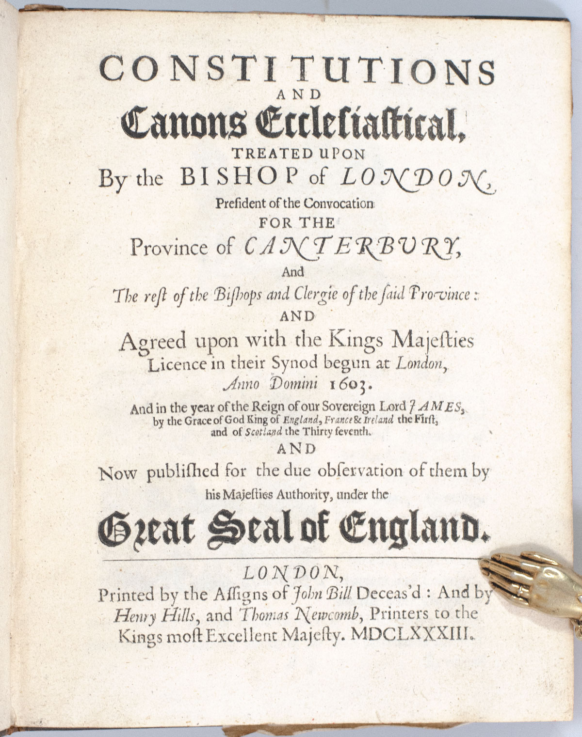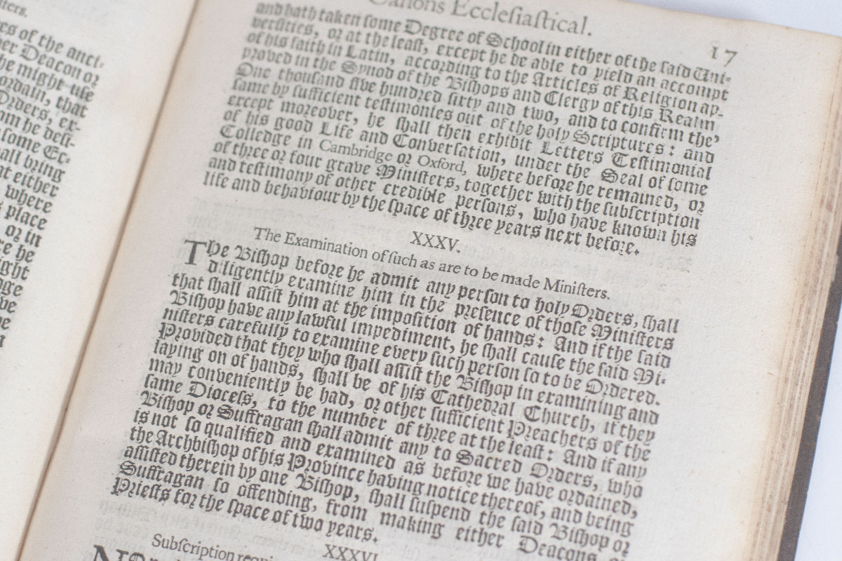 Rare 17th century printing of the Ecclesiastical Constitutions and Canons treated upon by the Bishop of London, president of the convocation for the province of Canterbury