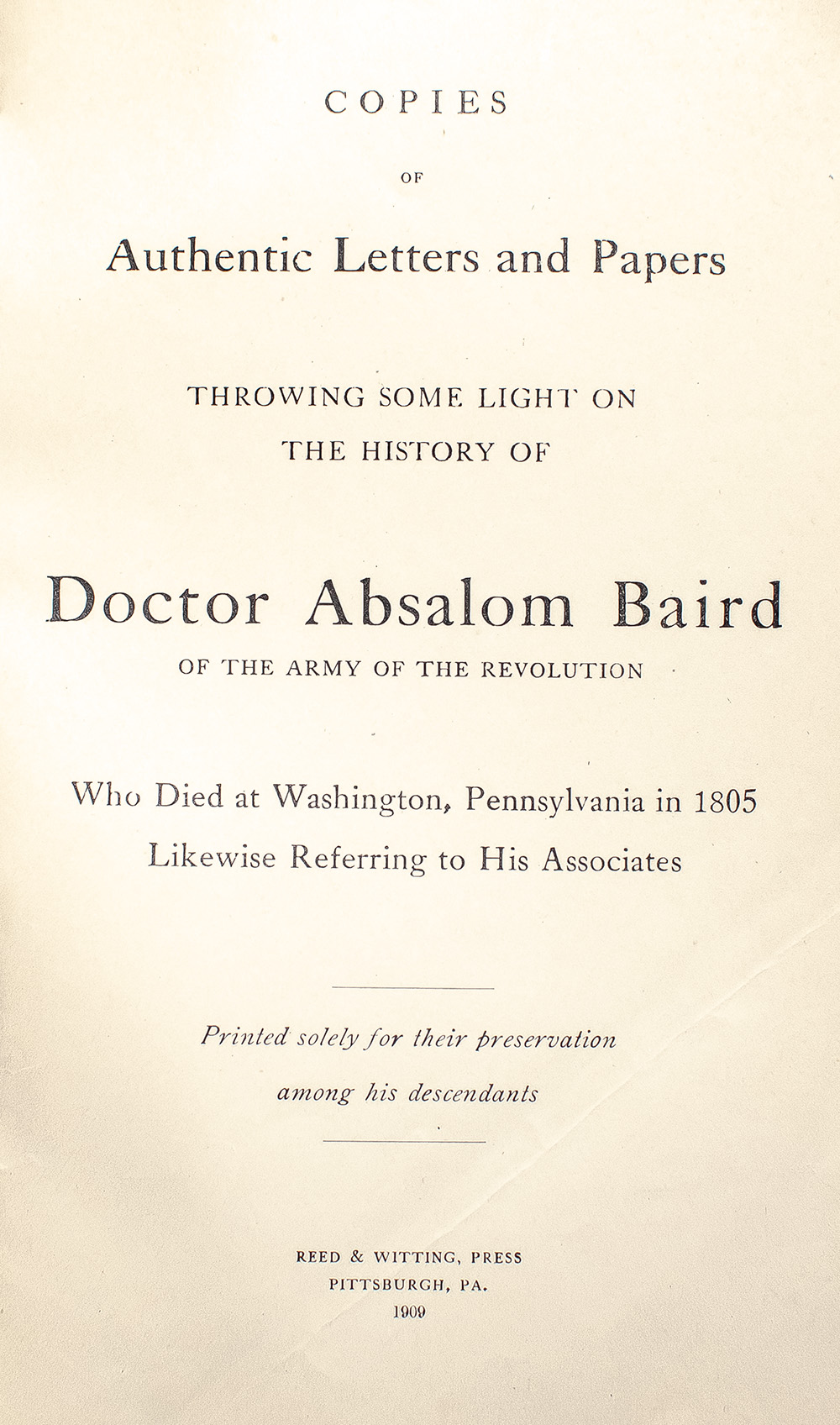 Copies of Authentic Letters and Papers Throwing Some Light on the History of Doctor Absalom Baird of the Army of the Revolution Who Died at Washington, Pennsylvania in 1805 Likewise Referring to His Associates.