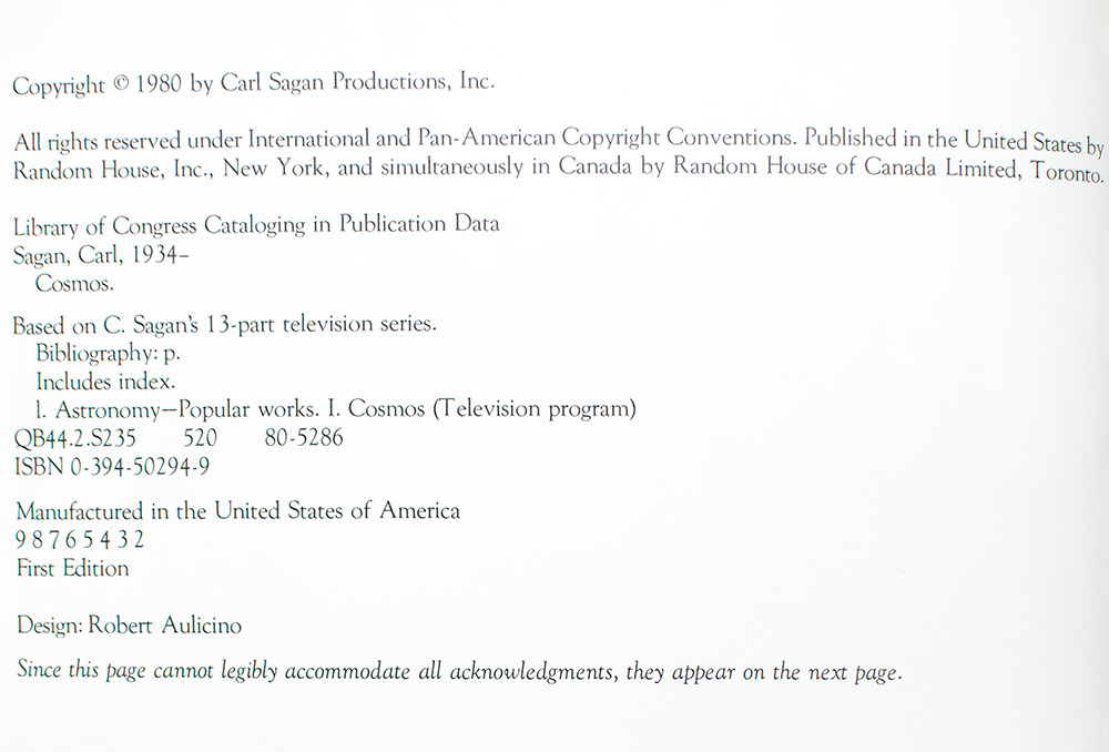 “If you wish to make an apple pie from scratch, you must first invent the universe": First Edition of Cosmos; Signed by Carl Sagan