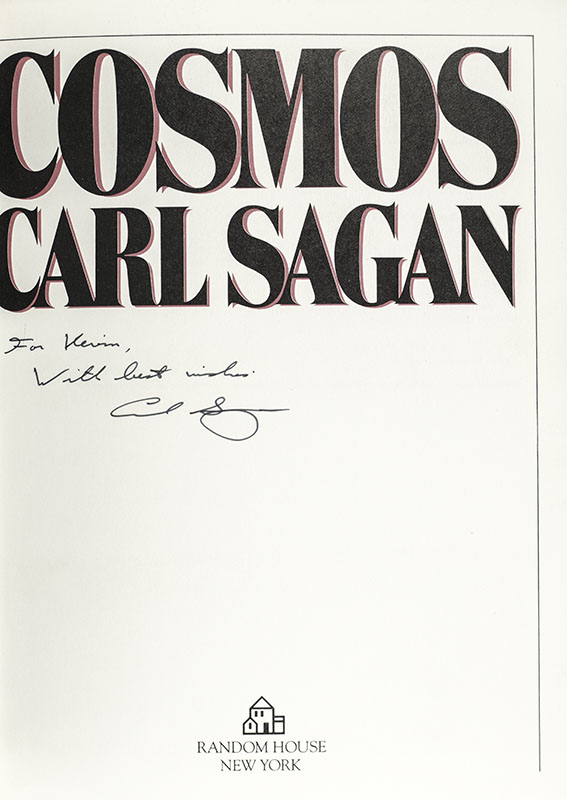 First edition, early printing of one of the best-selling science books ever published. Octavo, original half cloth. Presentation copy, inscribed by the author on the title page, "For Kevin, With best wishes Carl Sagan." Fine a near fine dust jacket. Jacket design by Robert Aulicino, jacket painting by Adolph Schaller.