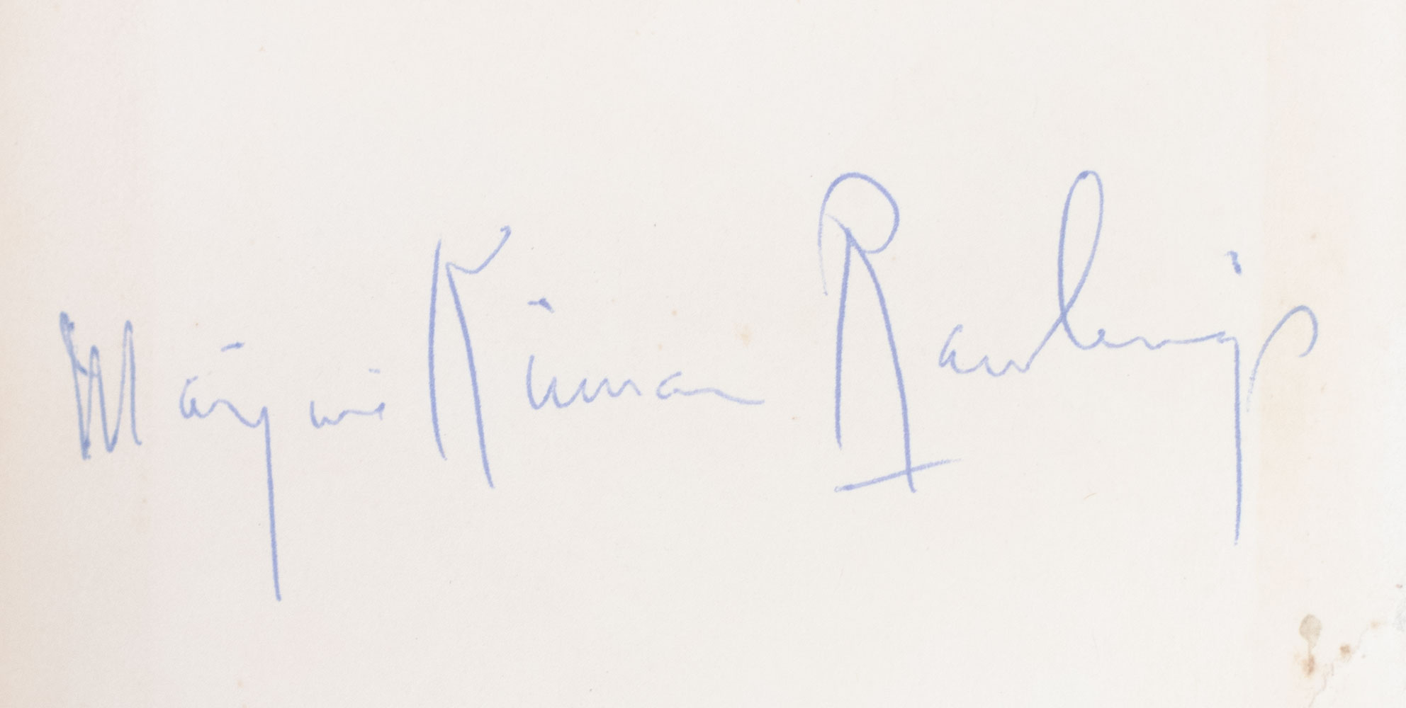 First edition of Rawlings’ heartwarming cookbook. Octavo, original pictorial calico-textured cloth. Boldly signed by Marjorie Kinnan Rawlings on the front free endpaper. In good condition. Illustrations by Robert Camp.
