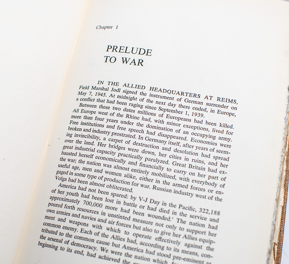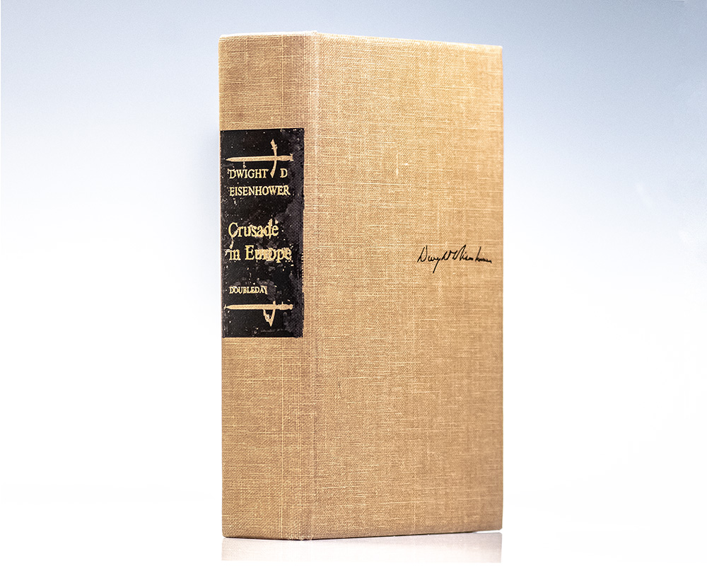 Signed limited first edition of General Eisenhower's wartime memoirs. Thick octavo, original cloth, cartographic endpapers, top edge gilt. One of 1426 numbered copies, this is number 748. Association copy, inscribed by Eisenhower on the limitation page, "To Perle Mesta with best wishes and affectionate regard from her devoted friend Ike Eisenhower.'' The recipient, Perle Mesta (1889–1975), was an American socialite, political hostess, and diplomat best known for her influential role in mid-twentieth-century Washington society. Celebrated as the “Hostess with the Mostes’,” she used her salons to bridge political divides and cultivate bipartisan connections, later serving as U.S. ambassador to Luxembourg (1949–1953) under President Harry S. Truman, where her charisma and social acumen became hallmarks of American soft diplomacy in the early Cold War era. Renowned for her ability to unite figures across the political spectrum, Mesta maintained friendships with leaders of both parties, including President Dwight D. Eisenhower, who was a frequent guest at her celebrated Washington gatherings. In near fine condition with light rubbing to the spine.