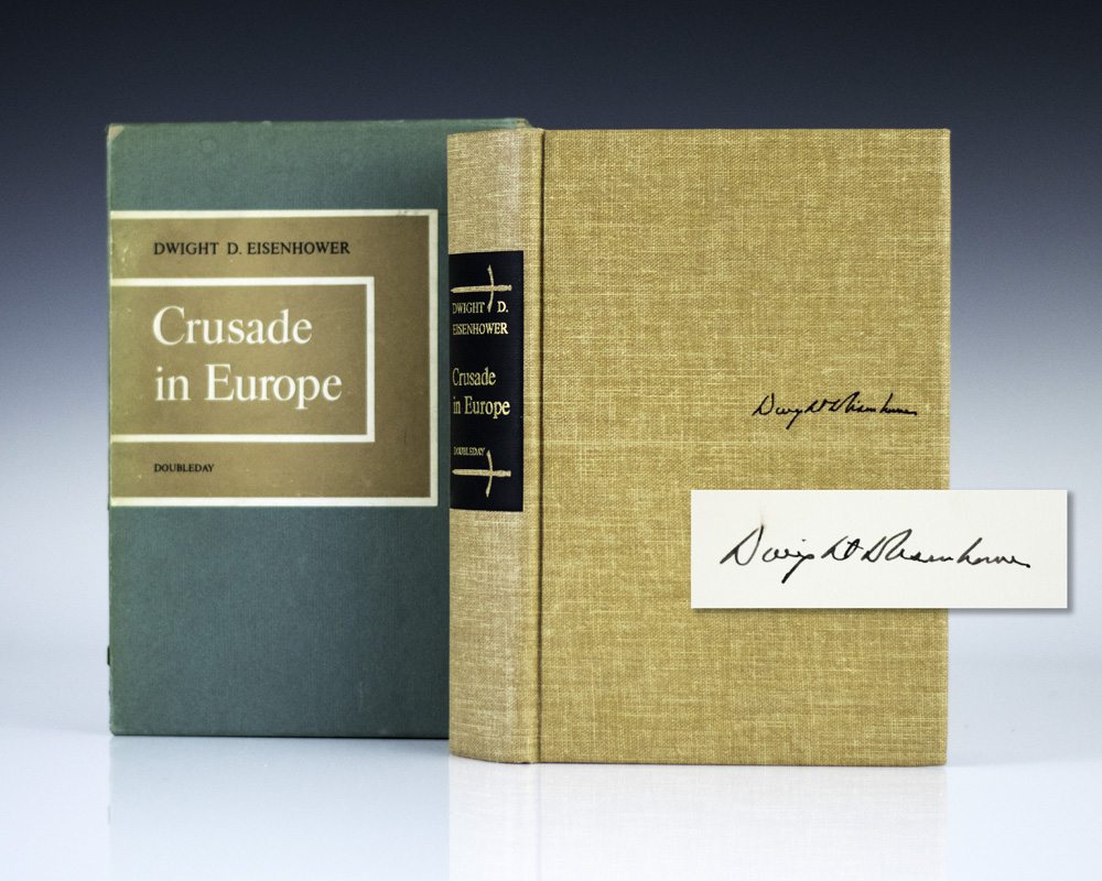 Signed limited first edition of General Eisenhower's wartime memoirs. Thick octavo, original cloth, cartographic endpapers, top edge gilt, original acetate. Signed by Dwight D. Eisenhower, number 299 of 1426 copies. Fine in the original acetate, which is in fine condition. Original slipcase in near fine condition with light rubbing. A very sharp example.