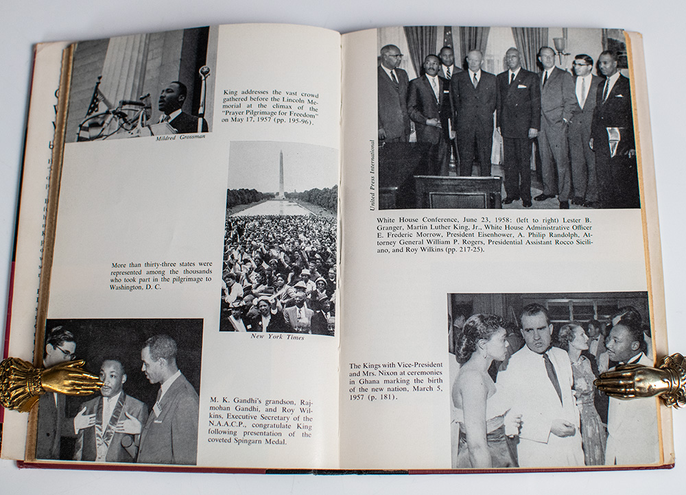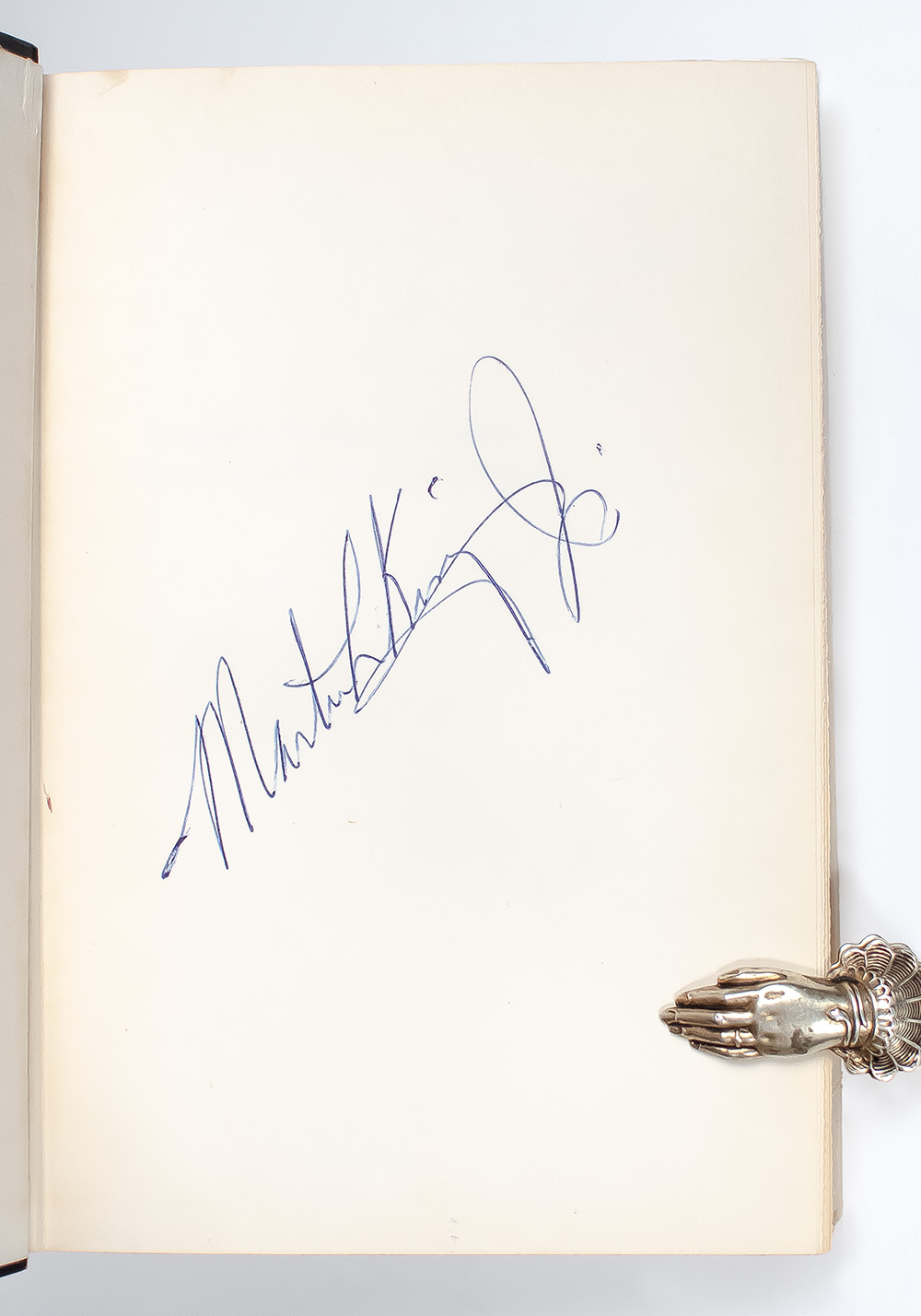 First edition of one the earliest biographies of "the American Gandhi." Octavo, original half cloth, illustrated with black and white photographs. Boldly signed by Martin Luther King, Jr. on the front free endpaper. Near fine in a very good dust jacket, name to the pastedown. Jacket photograph by Dan Weiner. Housed in a custom half morocco clamshell box made by the Harcourt Bindery. Rare and desirable, as only a few signed examples have appeared on the market.